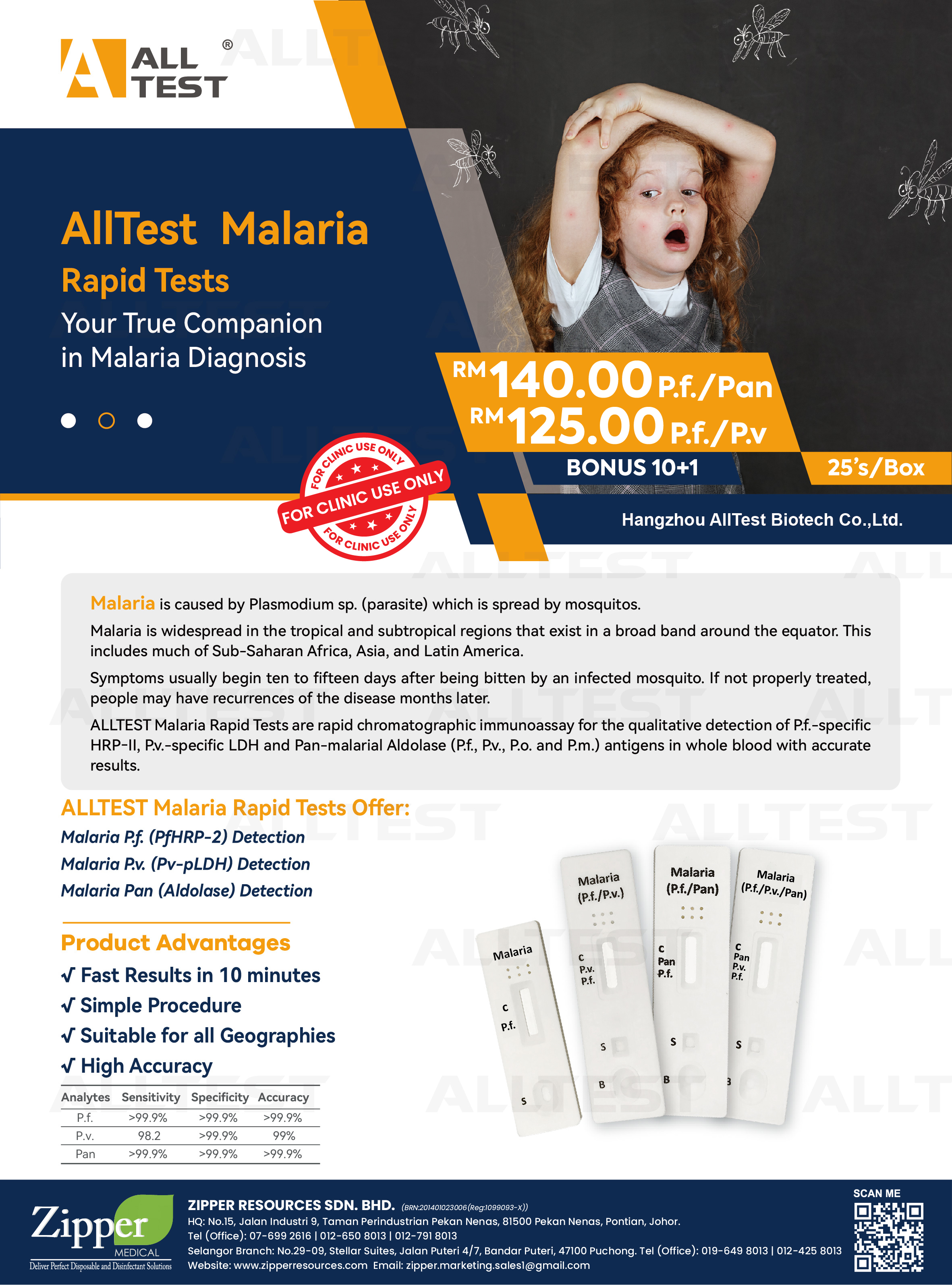 View more about ALLTEST Malaria P.f/Pan Rapid Test Cassette (25’s/Box) on main site